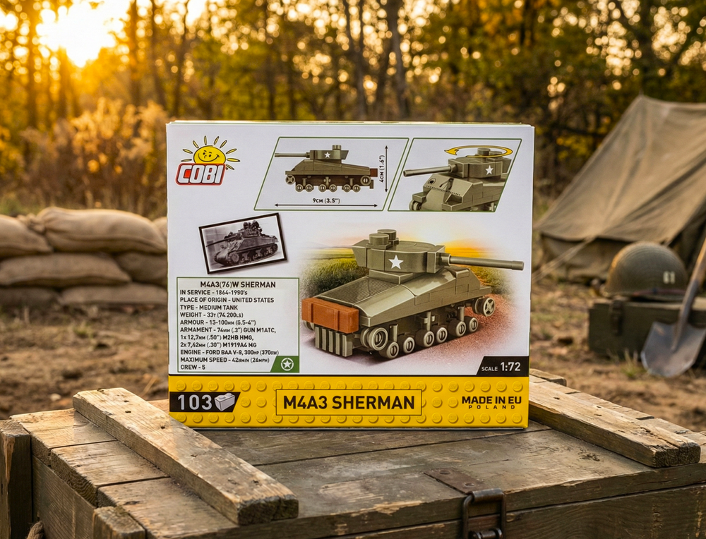 Entdecken Sie das COBI M4A3 Sherman Panzer-Bauset, ein detailliertes Modell des berühmten amerikanischen Panzers aus dem Zweiten Weltkrieg. Dieses Set besteht aus hochwertigen Bausteinen, die ohne Klebstoff perfekt zusammenpassen, und bietet bewegliche Teile wie einen drehbaren Turm. Ideal für Militärmodellbauer, Sammler und alle, die sich für historische Fahrzeuge interessieren. Fügen Sie diesen authentischen WWII-Panzer Ihrer Sammlung hinzu und erleben Sie Geschichte in Bauform!